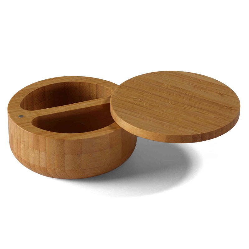 The bamboo double round spice box is great for storing salt, pepper, or any other spices.