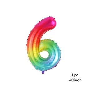 40inch New Rainbow Number Foil Balloons Happy Birthday Wedding Party Decoration Adult Colorful Unicorn Globos Kids Gift (Color: 1pc as picture3)