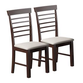 Dark Cherry Finish Wood Dining Chairs Set of 2 Faux Leather Upholstered Button Tufted Kitchen Dining Furniture Transitional Style