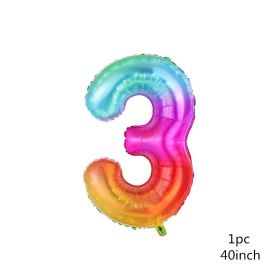 1PCS 40inch New Rainbow Number Foil Balloons Happy Birthday Wedding Party Decoration Adult Colorful Unicorn Globos Kids Gift (Color: 3)