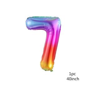 1PCS 40inch New Rainbow Number Foil Balloons Happy Birthday Wedding Party Decoration Adult Colorful Unicorn Globos Kids Gift (Color: 7)