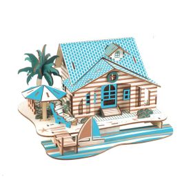 3D Wooden Puzzle for Kids DIY Assembly Jigsaw Model Kit Home Decor Gift - Holiday Villa