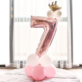 Aluminium Foil Number Balloons 0-9 Birthday Party Anniversary Decor Globo Kids figure Air Ball Supplies (Number: pink&white 7)