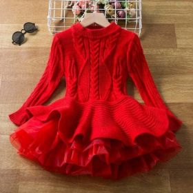 Girls Christmas Dress Knitting Sweater Dress for Girls Winter Dress (Kid Size: 5, Color: Red)