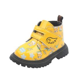 2022 New Autumn Winter Boots for Kids Girls Vintage Black Yellow Boys Ankle Boots Simple Solid Short Boots Baby Toddler E08013 (Size: 26, Color: yellow)