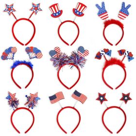 9Pcs Patriotic American Flag Sequined Bow, Stars ribbon Headbands, Uncle Sam Hat (Color: B)