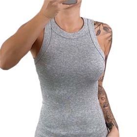 2023 Summer Women Print Top Fashion Women Casual Army Camo Camouflage Tank Sleeveless O-neck Slim Vest T-Shirts (Size: XXL, Color: Grey)