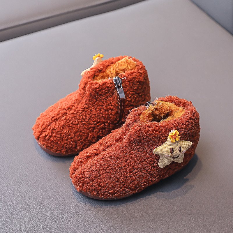 Home > Baby Girls Short Boots Black White Khaki Children's Hairy Shoes Winter Furry Velvet Toddler Girl Cotton Boots with Star E10301