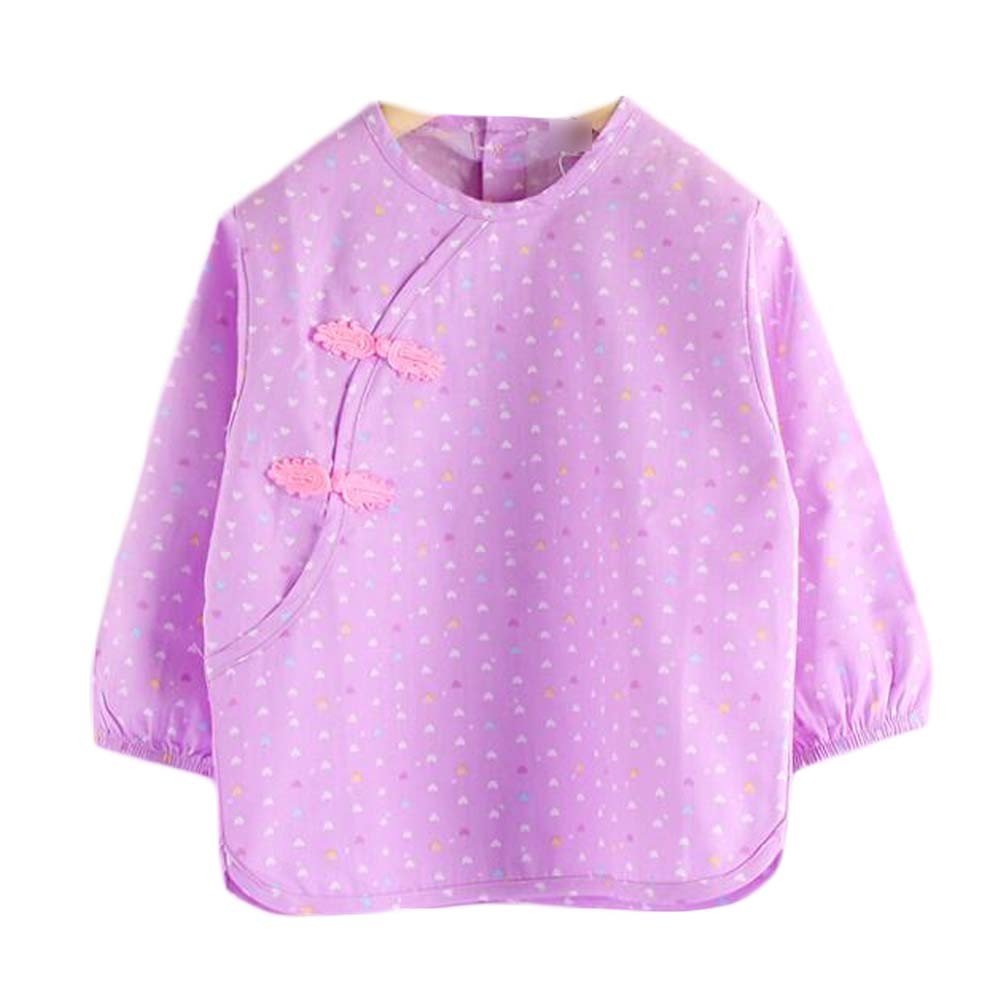Purple Hearts Baby Eating Smock Inner Waterproof Chinese Style Kids Bibs Long Sleeve Princess Apron