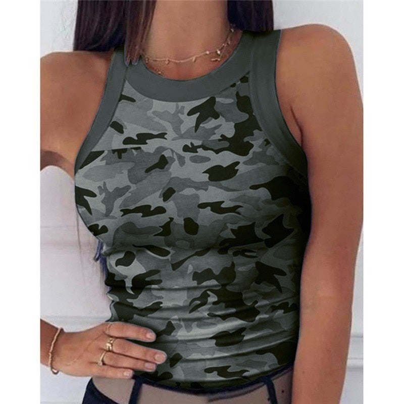 2023 Summer Women Print Top Fashion Women Casual Army Camo Camouflage