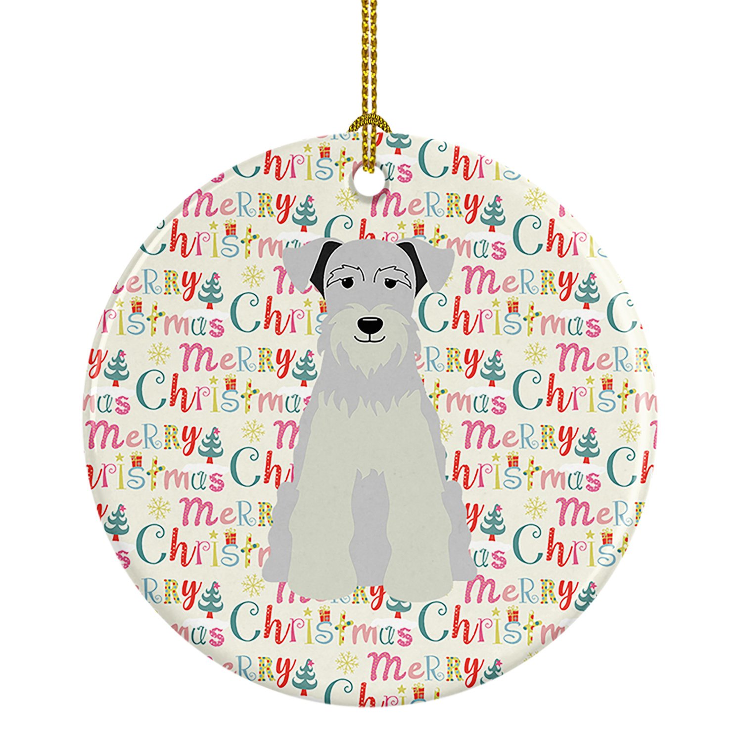 Ceramic Ornament featuring breed specific Schnauzer artwork. Celebrate Christmas with this Christmas Ornament. This Ceramic Ornament is from Caroline's Treasures collection Merry Christmas. Add a touch of personalized charm to your Christmas tree this holiday season with our Ceramic Ornament. Measuring 2.8125 inches in diameter, this round porcelain ornament beautifully reflects your festive lights, enhancing your holiday decor. The gloss surface sets off the vibrant, full-color artwork contributed by one of our talented artists, bringing a pop of color and joy to your tree. This Ceramic Ornament doesn't stop at being merely decorative. The white back is designed for personalization. Write a heartfelt message, mark a special year, or inscribe a date with a paint pen or a permanent marker to create a treasured memento. Please ensure you allow any personalization to dry thoroughly before handling to maintain the pristine finish. Included with the ornament is a delicate gold cord for easy hanging. Made in the USA, this Ceramic Ornament makes an exceptional gift for a pet sitter, teacher, family member, or anyone you wish to share a little Christmas magic with. With its blend of style, charm, and personal touch, it's a meaningful addition to any Christmas tree. This Ornament is from Caroline's Treasures Dogs category of products.