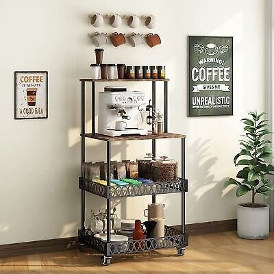 product details Spoway's 4-storey kitchen bread rack, heavy-duty vertical kitchen storage bread rack with rollers, and upgraded industrial microwave rack The microwave rack is a 4-storey open kitchen rack. The upper shelf houses microwave ovens, coffee machines, spice bottles, and kitchen decorations. The bottom two shelves hold kitchen supplies, such as vegetables and cooking utensils. Keep snacks and fruits, chargers, and keys in the living room; For garages, place automotive products, wrenches, etc. Multiple uses, saving every inch of your space! Equipped with bottom wheels and locks, easy and safe to move! Kitchen shelves for spices, pots, and pans [not just kitchen shelves]: Whether it's a snack rack, coffee bar, flower rack, or decorative rack, this kitchen shelf organizer can meet all needs.[Space saving]:The microwave oven rack has four layers of open storage racks. The upper two layers can accommodate microwave ovens, coffee machines, seasoning bottles, and kitchen decorations, while the lower two layers can accommodate kitchen supplies such as vegetables and cooking utensils[Hollow ventilation design]:The removable storage rack utility cart features a mesh mesh design that allows air circulation and reduces dust accumulation, ensuring breathability and odor free, making it easy to clean. Easily removable, stacked without occupying space[Humanistic care]:The double column design prevents shaking, and the thick double tube metal frame provides sufficient strength to withstand a weight of 70 pounds. Absolutely meet your daily needs. There are 4 heavy-duty casters that can rotate 360 degrees, and 2 lockable casters that can easily and easily roll the storage cart to any place you need or place it in a permanent place without sliding [sturdy]:Our vertical bread rack is made of high-quality steel and uses a high-temperature paint baking process. Robust metal basket, waterproof, scratch resistant, easy to clean