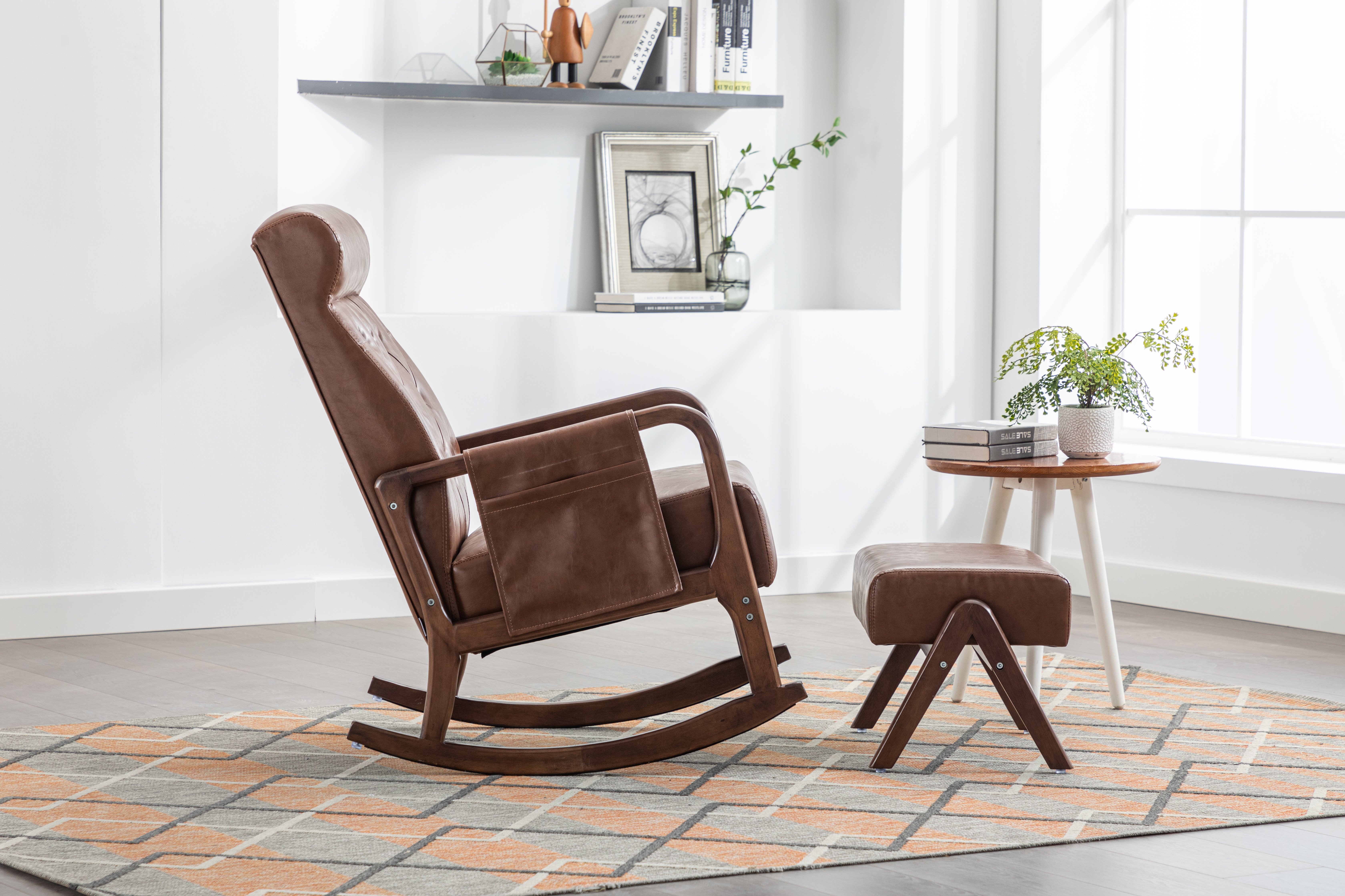 COOLMORE Rocking Chair With Ottoman, Mid-Century Modern Upholstered Fabric