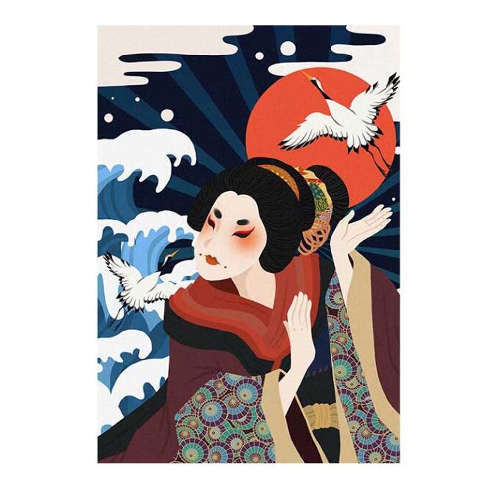 Kitchen Door Curtain Japanese Beauty Crane Partition Half Curtain Restaurant Short Curtain Sushi Ramen Decor,29x35 Inch