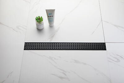 Square Shower Floor Drain with Flange,Pattern Grate Removable,Food-Grade SUS 304 Stainless Steel24 Inches Linear Shower Drain with Removable Quadrato Pattern Grate, 304 Stainless Shower Drain Included Hair Strainer and Leveling Feet√ Shower Drain Design:The 24 inch linear drain cover with brick pattern cover design, enhancing water flow. Embedded design offer a invisible and seamless look on your floor. Heavy duty steel cover offer a good sealing ability.√ Design: The 24 inch linear drain cover with brick pattern cover design, enhancing water flow. Adjustable horizontal feet help to install the drain channel to keep it level. Laser seamless wielding to prevent leakag√ Installation: Linear Shower Drain outlet easy to unload, fits US NO HUB Drain Base System. Can be used in kitchen, bathroom, garage, basement and toilet ;and also Preventing unpleasant smell, insects and mice from entering the house.√ Superior Drainage Profile: Enhanced slope to aid flow of water to shower drain outlet, improves the water flow speed,and effectively solves the problem of water accumulation in the bathroom and swimming pool. Can be used in kitchen, bathroom, garage, basement and toilet.and also Preventing unpleasant smell, insects and mice from entering the house.√ Easy cleaning: The drainage kit has a detachable hair filter / trap and key. You can easily lift the cover for cleaning. The built-in anti blocking conditioner can easily collect fallen hair and protect your pipes from blockage.