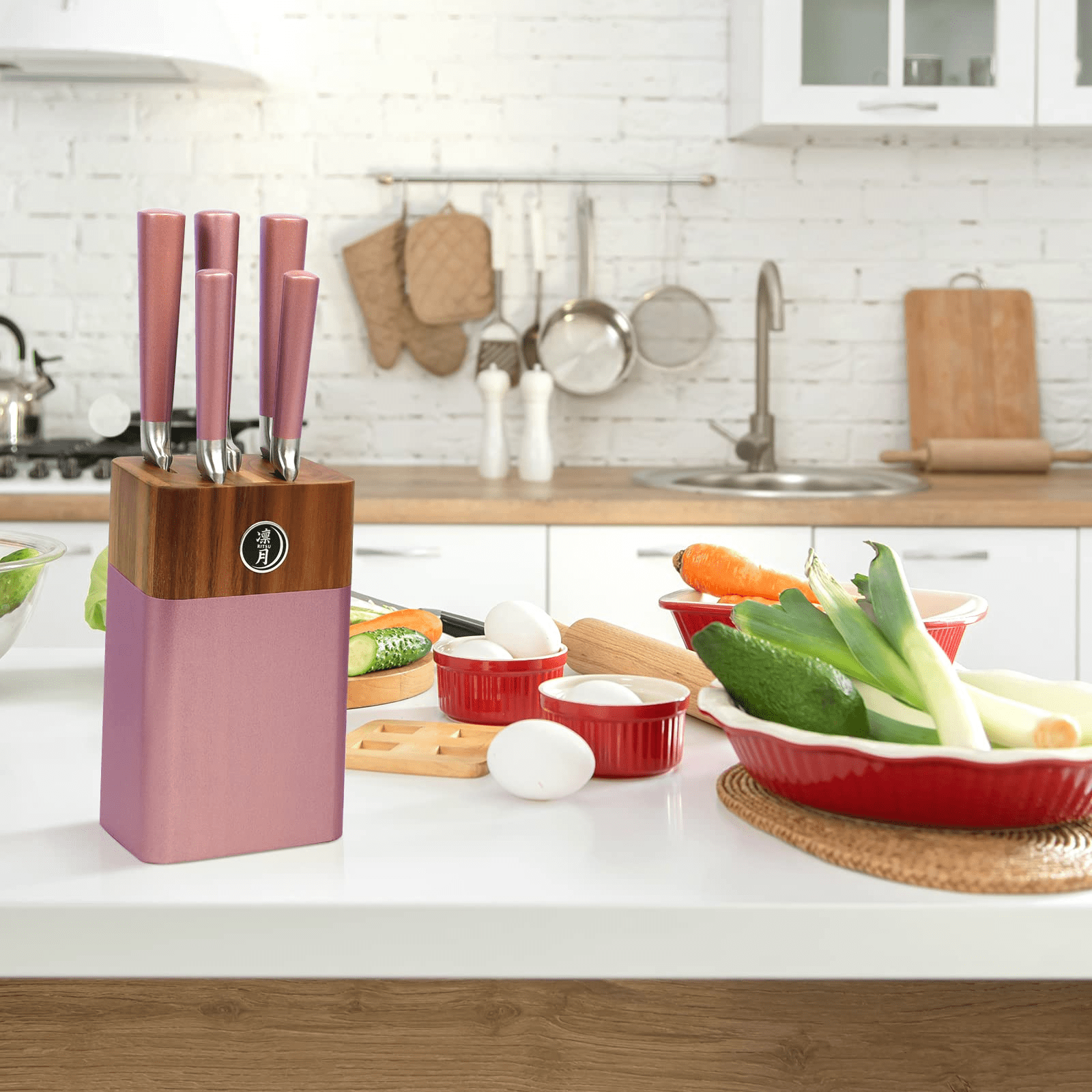 New Style Pink Colored 6 Pieces Kitchen Knife Block Set