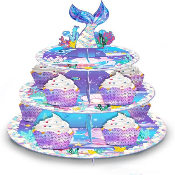 Home > Mermaid Cake Stand Dessert Table Display Set Serving Tray 3-Tier Cardboard Cupcake Stand Holder Tower Round Desserts Pastry Birthday Party Supplies fo