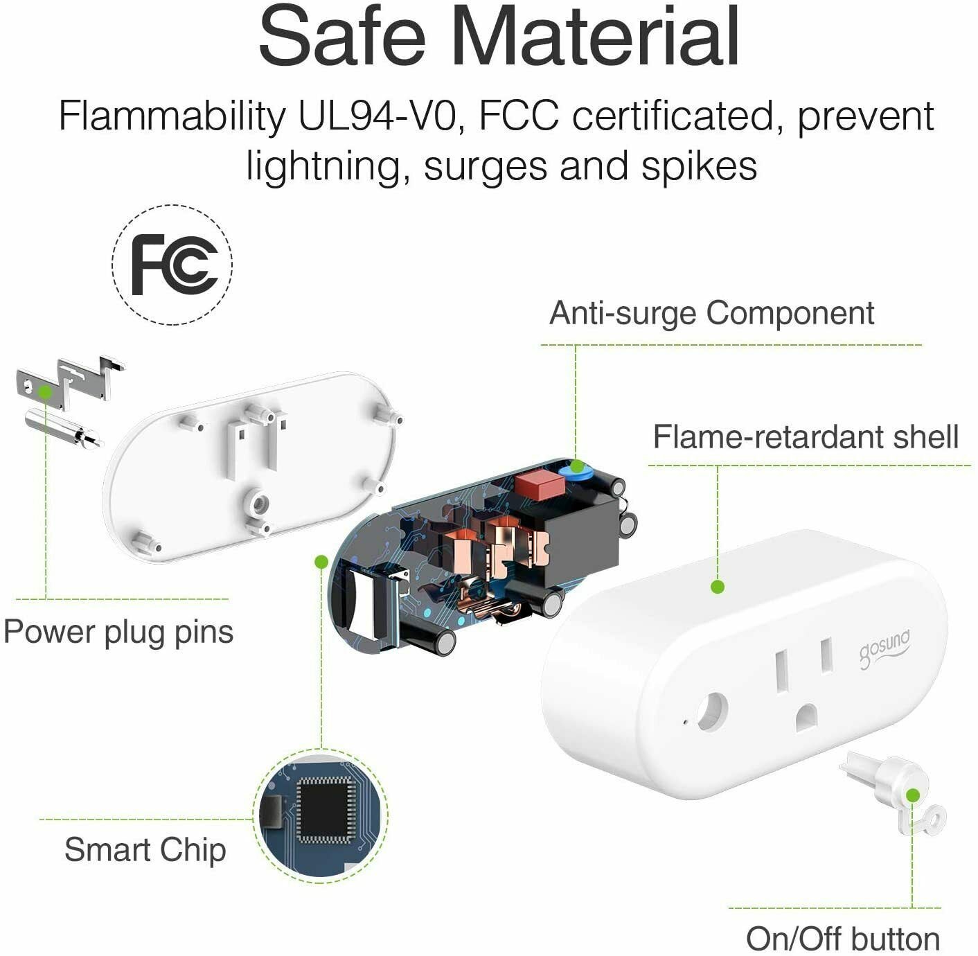 1.Compact Design with Safety Use: 15 A smart plugs Fcc certified with compact design, avoid covering another wall socket. It uses Pc V0 class flame retardant materials. 120V available voltage range supports small or large power home appliances while adds security for high-power appliances