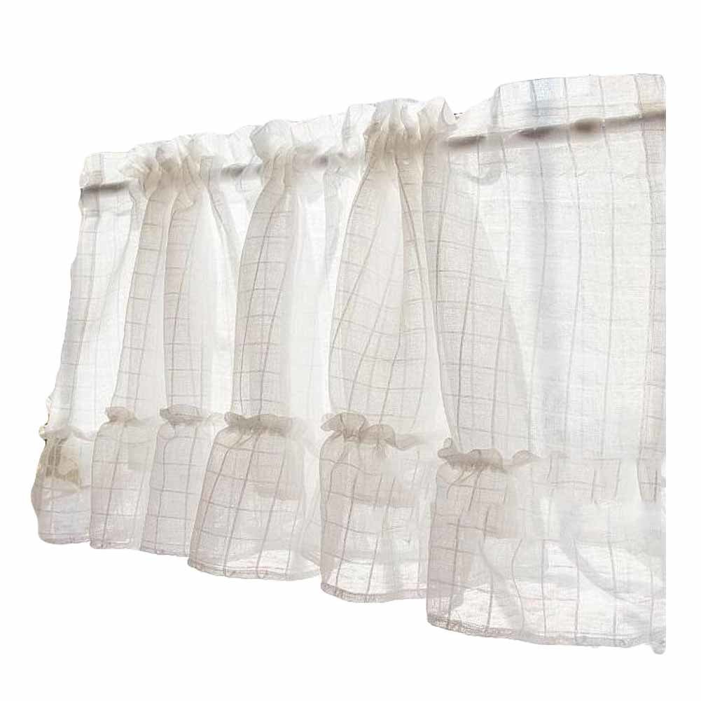 Grid - Translucent Short Kitchen Curtain Window Curtain Cafe Tier Curtain Gauze