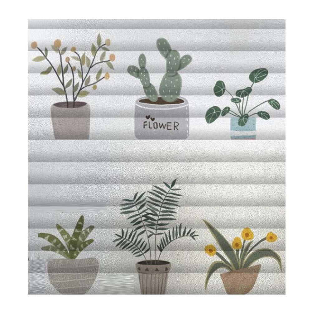 Home > Cactus Translucent Stained Glass Window Film No Glue Static Decorative Privacy Window Film; 15x39 inches