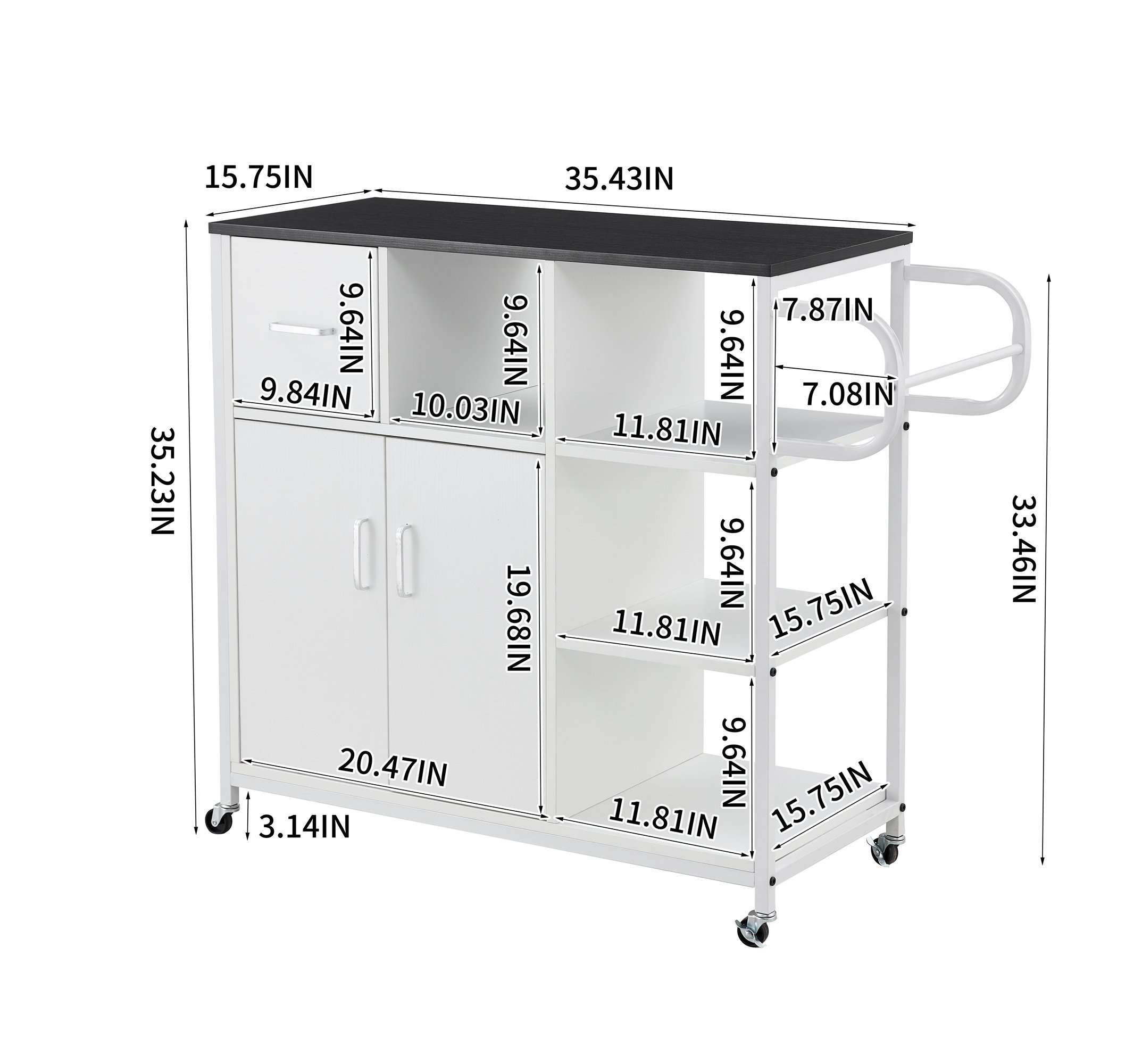 4)Wheels that facilitate movement around your kitchen as well as locking casters for fixed positioning.