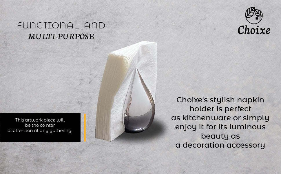 FUNCTIONAL AND MULTI-PURPOSE. Choixe's stylish napkin holder is perfect as kitchenware or simply enjoy it for its luminous beauty as a decoration accessory.