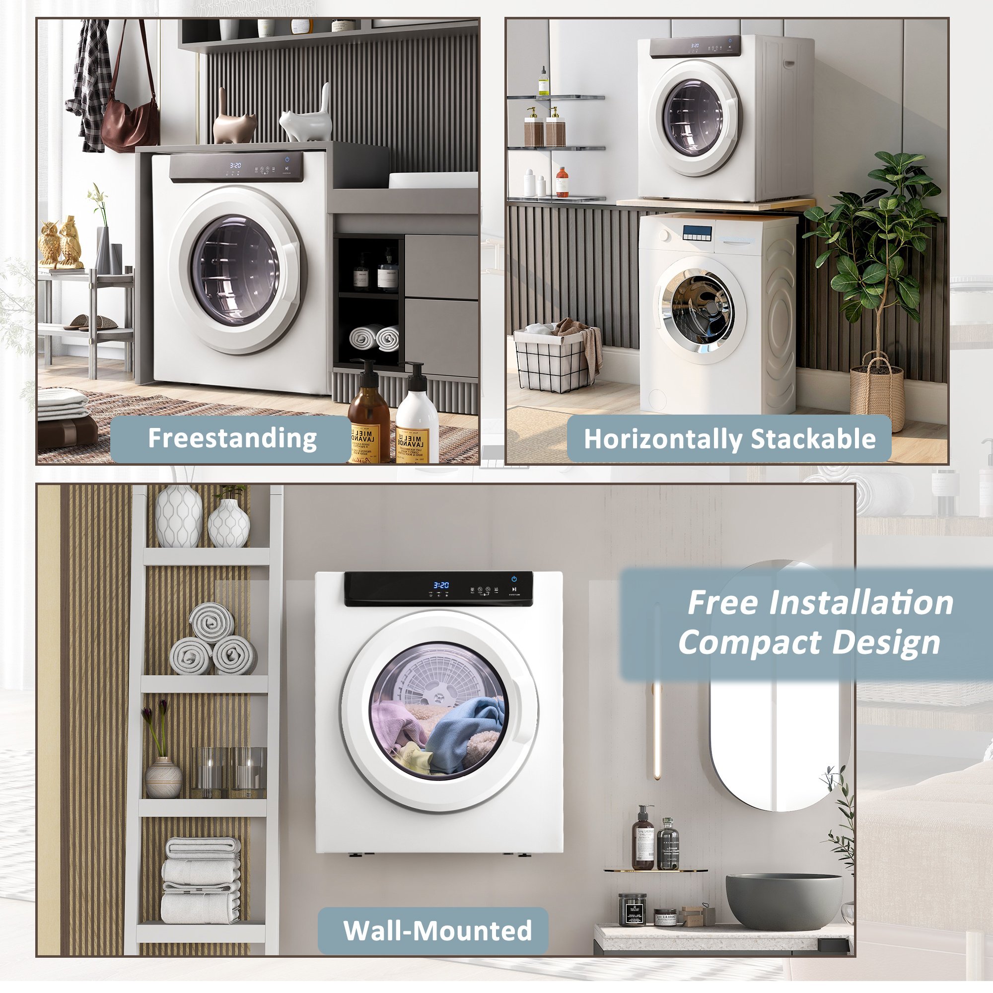 4.No need to worry about the newly added dryers being nowhere to be placed and taking up too much space. This compact and powerful electric dryer has a straight shape, can be neatly stacked on the washing machine, can also be installed on the wall or placed separately. This provides more placement options and saves space in small laundry rooms, apartments, dormitories, and other places.