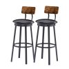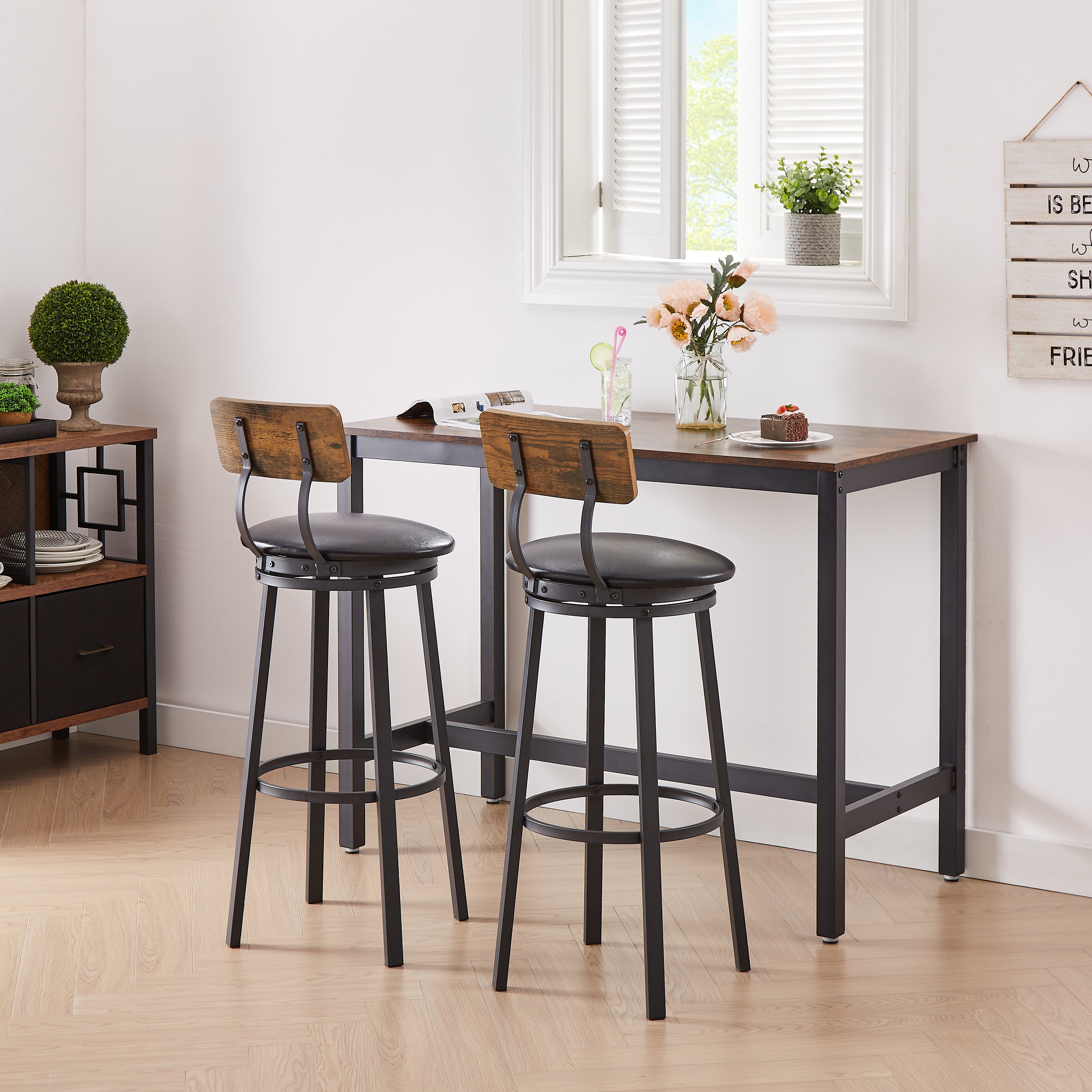 Oval Stool Swivel Bar Stool; Tall Bar Stool With Backrest; Industrial; Thick Iron Frame Footrest; 29.5" High.(Rustic Brown; 17.5''w x 13.4''d x 40.5''h)Package Contents2 x Bar Stool1 x Assembly Kit1 x InstructionsProduct Description• The 1.8-inch thick padded seat is comfortable to sit on; and can also rotate 360°; allowing you to sit on the bar stool easily and turn around to chat with others; which is comfortable and convenient!•The oval-shaped wide stool allows you to sit on it freely; and at the same time; your hands can rest on both sides of the stool.•The curved backrest is ergonomically designed to fit your back. Thickened steel support; the backrest is stable and will not shake.•The brown backrest and black iron frame create a minimalist style.• The hoop on the bottom of the stool is placed at the correct height to support the foot.• Additional seating will be provided in the kitchen; living room and family gatherings. It can even be used as industrial decoration.• Stool feet are padded to avoid scratching the floor.• Your bar stool is up to you; you can place it anywhere in your home for a drink with good friends or just relax with a drink by yourself.Product information•Product Type: swivel bar stool set•Color:Rustic Brown•Material: Particleboard; Iron; PU•Dimensions: 17.5''w x 13.4''d x 40.5''h•Seat Height: 29.5''•Stool cushion height from the ground:29.5''•Backrest width:11.8''•Max. Static Load Capacity per Stool:440lb•Assembly Required: About 25 minutes•Ships in 1 package Notice•Indoor use only.•Colorways and measurements may vary slightly.•Consult all warning information and use caution when assembling. •Liquids should be immediately blotted with a damp cloth. •Avoid the use of chemicals and household cleaners as they may damage the finish.•Adjust locks and hardware as needed.•Please do not exceed its weight limit.