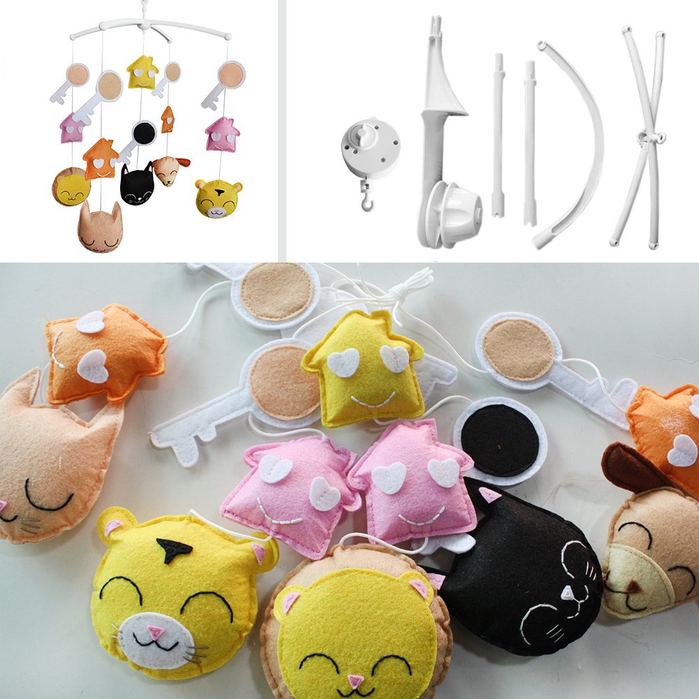Each package contains a Baby Crib Mobile Bed Bell Holder Arm Bracket and a Wind-up Music Box and toys. This handmade baby crib mobile plays light music to help your baby easily fall asleep. Easy operation and convenient to use, it will rotate while playing music. Each mobile plays Only One soothing pure and light song. Keep baby calm and happy, with this mesmerizing mobile. It is an essential product for baby and nursery. The toys are made from nonwoven fabric. Please note: Can be customized, please contact us about the colors you like, otherwise we will ship the item in original color to you.