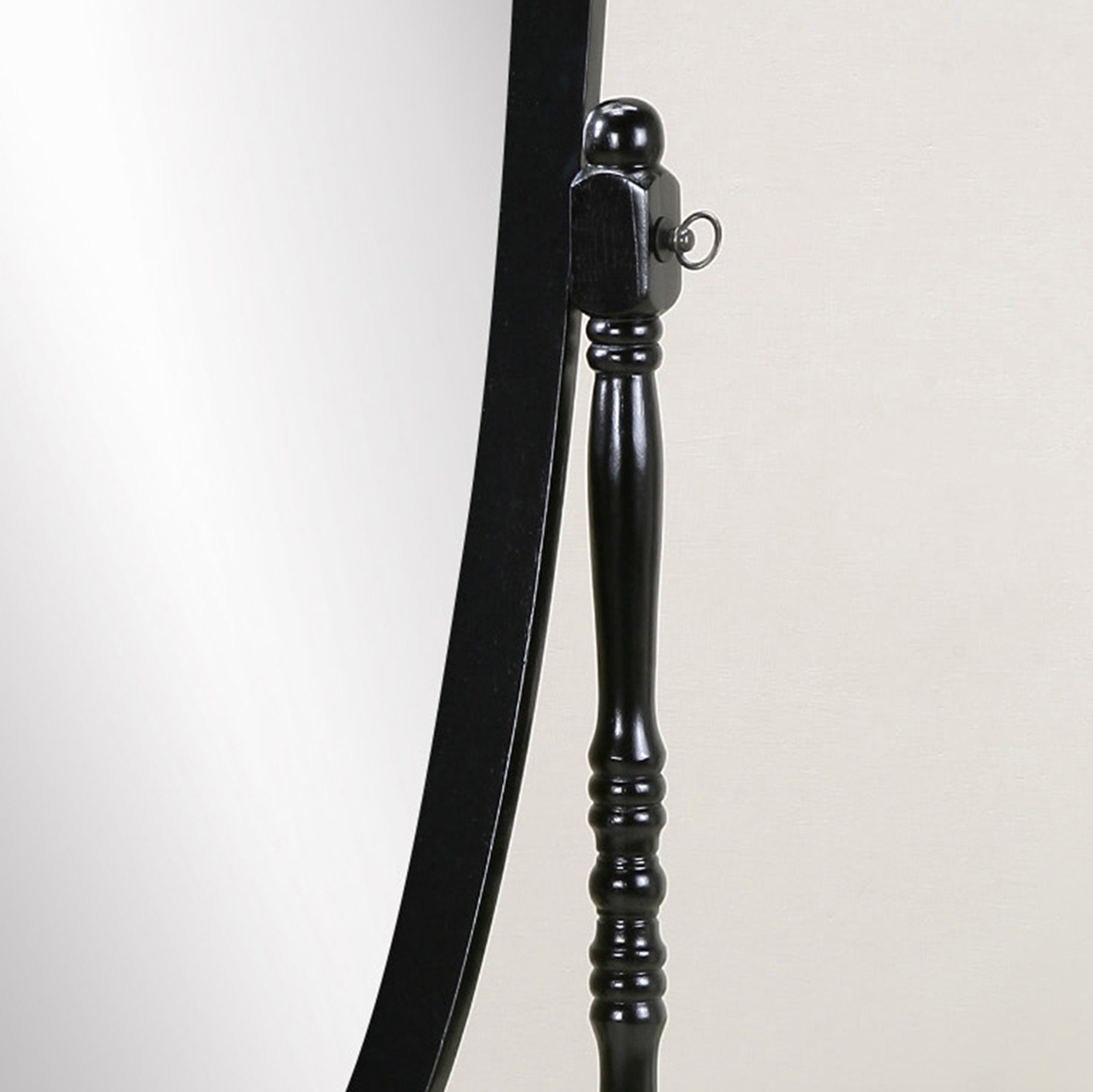 Traditional Queen Anna Style Wood Floor Cheval Mirror, Black Finish