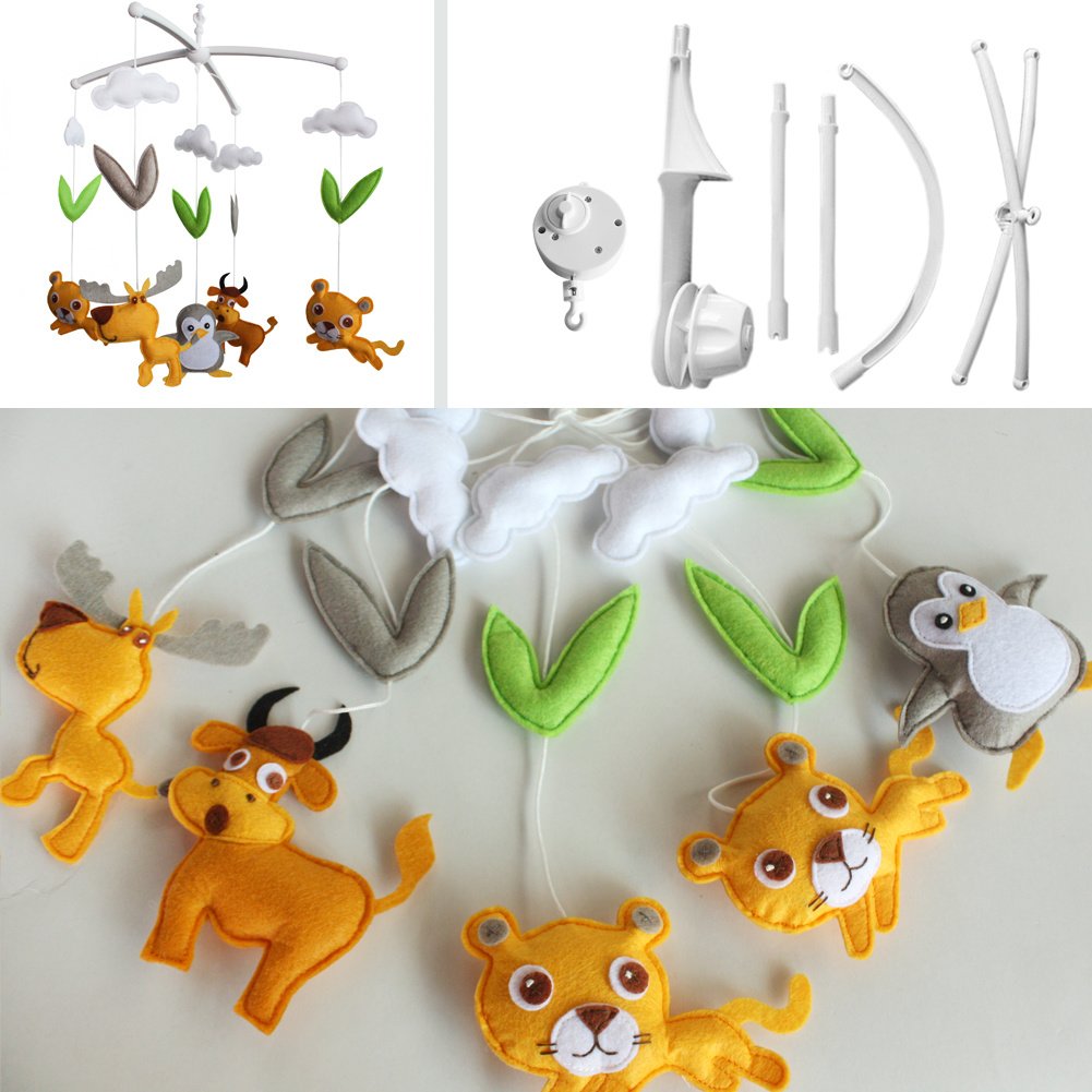 Each package contains a Baby Crib Mobile Bed Bell Holder Arm Bracket and a Wind-up Music Box and toys. This handmade baby crib mobile plays light music to help your baby easily fall asleep. Easy operation and convenient to use, it will rotate while playing music. Each mobile plays Only One soothing pure and light song. Keep baby calm and happy, with this mesmerizing mobile. It is an essential product for baby and nursery. The toys are made from nonwoven fabric. Please note: Can be customized, please contact us about the colors you like, otherwise we will ship the item in original color to you.