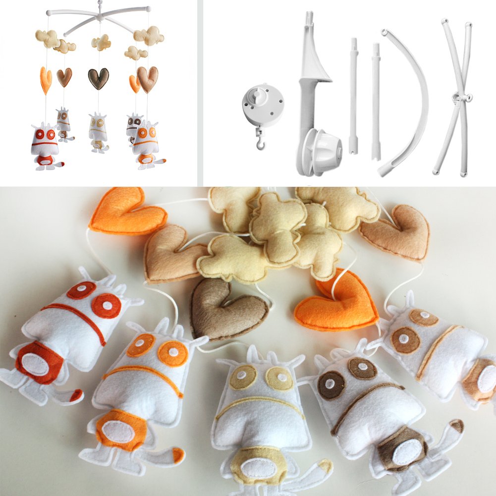 Each package contains a Baby Crib Mobile Bed Bell Holder Arm Bracket and a Wind-up Music Box and toys. This handmade baby crib mobile plays light music to help your baby easily fall asleep. Easy operation and convenient to use, it will rotate while playing music. Each mobile plays Only One soothing pure and light song. Keep baby calm and happy, with this mesmerizing mobile. It is an essential product for baby and nursery. The toys are made from nonwoven fabric. Please note: Can be customized, please contact us about the colors you like, otherwise we will ship the item in original color to you.