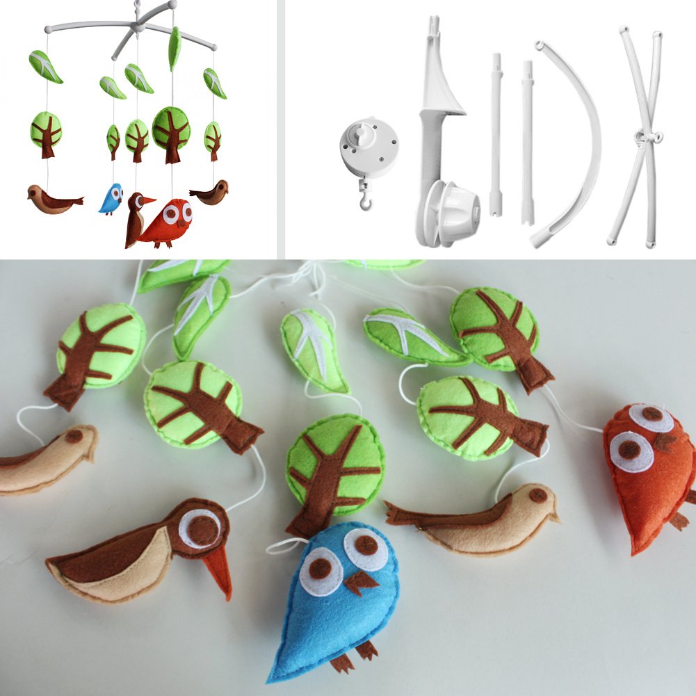 Each package contains a Baby Crib Mobile Bed Bell Holder Arm Bracket and a Wind-up Music Box and toys. This handmade baby crib mobile plays light music to help your baby easily fall asleep. Easy operation and convenient to use, it will rotate while playing music. Each mobile plays Only One soothing pure and light song. Keep baby calm and happy, with this mesmerizing mobile. It is an essential product for baby and nursery. The toys are made from nonwoven fabric. Please note: Can be customized, please contact us about the colors you like, otherwise we will ship the item in original color to you.