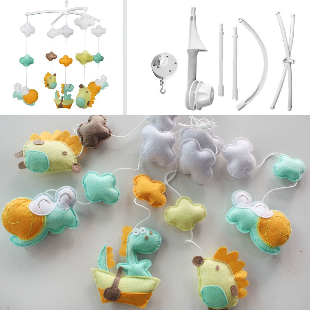 Each package contains a Baby Crib Mobile Bed Bell Holder Arm Bracket and a Wind-up Music Box and toys. This handmade baby crib mobile plays light music to help your baby easily fall asleep. Easy operation and convenient to use, it will rotate while playing music. Keep baby calm and happy, with this mesmerizing mobile. It is an essential product for baby and nursery. The toys are made from nonwoven fabric. Please note: Can be customized, please contact us about the colors you like, otherwise we will ship the item in original color to you. Each mobile plays Only One soothing pure and light song, it is Brahms Lullaby or Mozart Lullaby(random).
