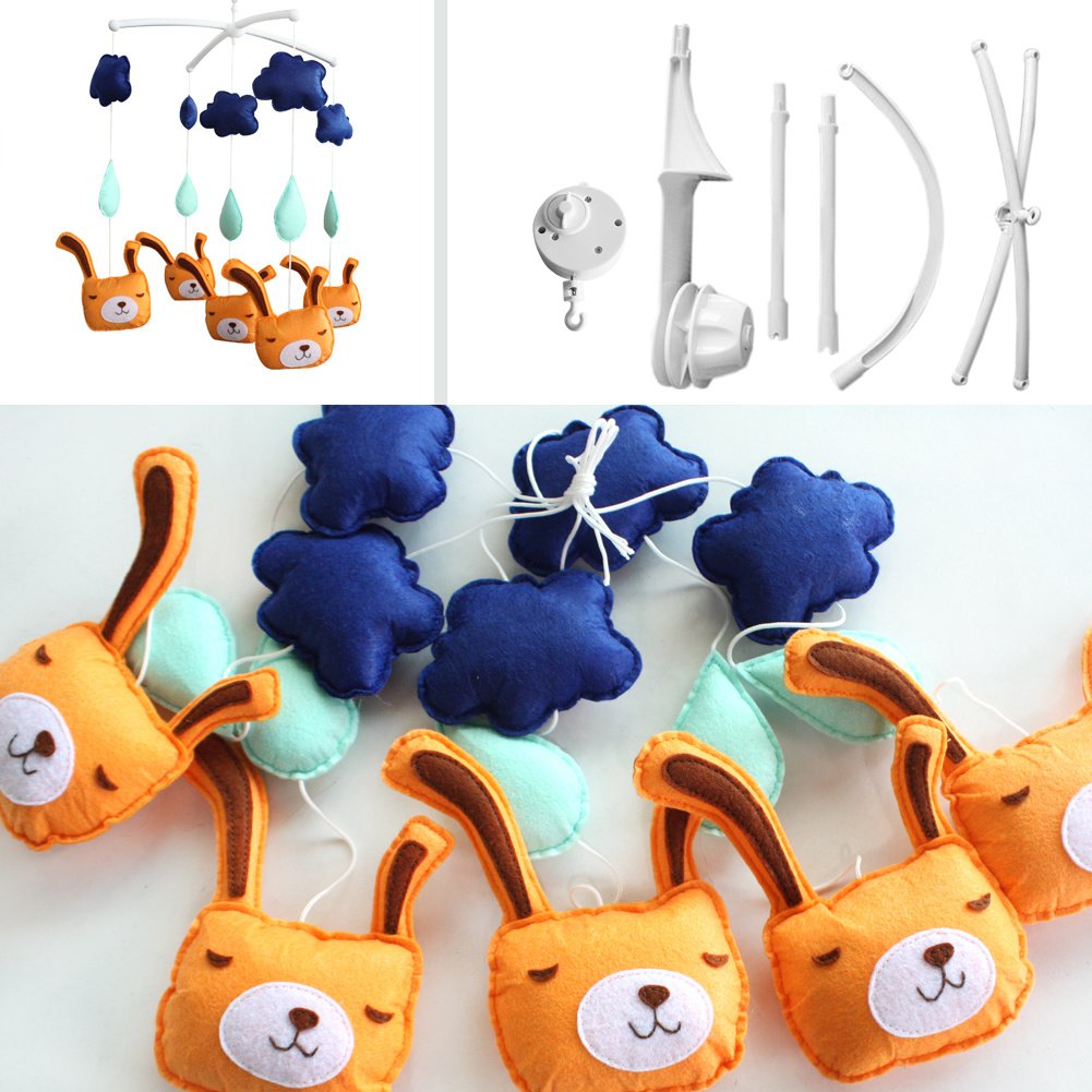 Each package contains a Baby Crib Mobile Bed Bell Holder Arm Bracket and a Wind-up Music Box and toys. This handmade baby crib mobile plays light music to help your baby easily fall asleep. Easy operation and convenient to use, it will rotate while playing music. Each mobile plays Only One soothing pure and light song. Keep baby calm and happy, with this mesmerizing mobile. It is an essential product for baby and nursery. The toys are made from nonwoven fabric. Please note: Can be customized, please contact us about the size you need, otherwise we will ship the item in original size to you.