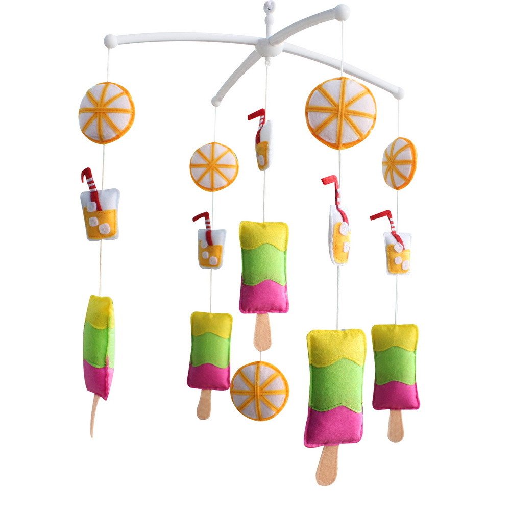 Each package contains a Baby Crib Mobile Bed Bell Holder Arm Bracket and a Wind-up Music Box and toys. This handmade baby crib mobile plays light music to help your baby easily fall asleep. Easy operation and convenient to use, it will rotate while playing music. Each mobile plays Only One soothing pure and light song. Keep baby calm and happy, with this mesmerizing mobile. It is an essential product for baby and nursery. The toys are made from nonwoven fabric. Please note: Can be customized, please contact us about the size you need, otherwise we will ship the item in original size to you.