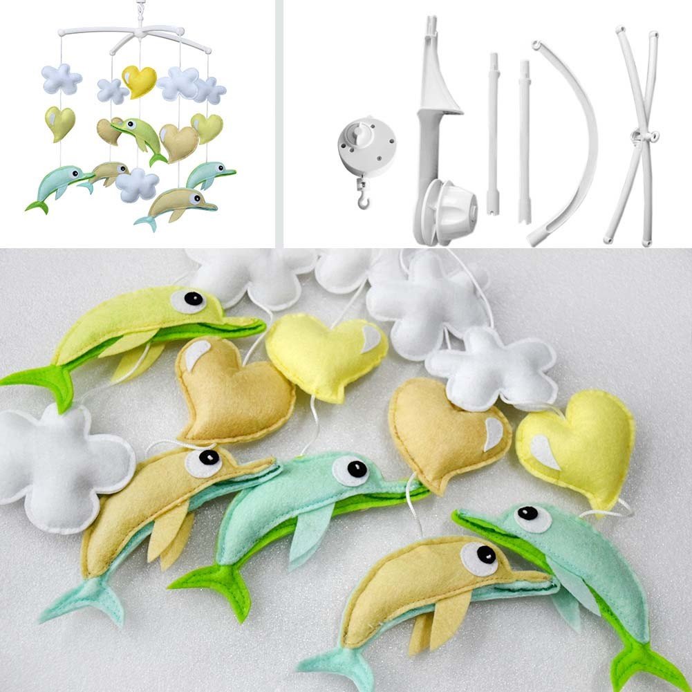 Green Dolphin Baby Crib Mobile Handmade Non-Woven Musical Mobile Crib Toy Nursery Room Decor Green Dolphin Baby Crib Mobile Handmade Non-Woven Musical Mobile Crib Toy Nursery Room Decor