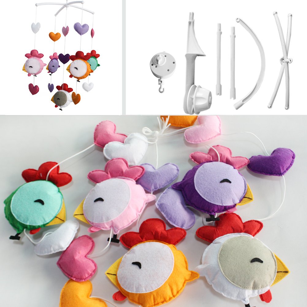 Each package contains a Baby Crib Mobile Bed Bell Holder Arm Bracket and a Wind-up Music Box and toys. This handmade baby crib mobile plays light music to help your baby easily fall asleep. Easy operation and convenient to use, it will rotate while playing music. Each mobile plays Only One soothing pure and light song. Keep baby calm and happy, with this mesmerizing mobile. It is an essential product for baby and nursery. The toys are made from nonwoven fabric. Please note: Can be customized, please contact us about the size you need, otherwise we will ship the item in original size to you.