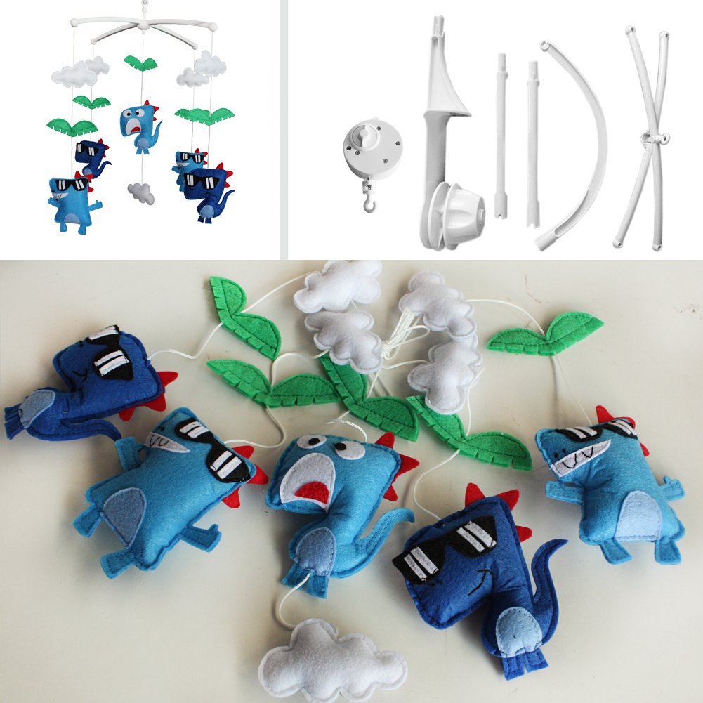 Each package contains a Baby Crib Mobile Bed Bell Holder Arm Bracket and a Wind-up Music Box and toys. This handmade baby crib mobile plays light music to help your baby easily fall asleep. Easy operation and convenient to use, it will rotate while playing music. Each mobile plays Only One soothing pure and light song. Keep baby calm and happy, with this mesmerizing mobile. It is an essential product for baby and nursery. The toys are made from nonwoven fabric. Please note: Can be customized, please contact us about the colors you like, otherwise we will ship the item in original color to you.
