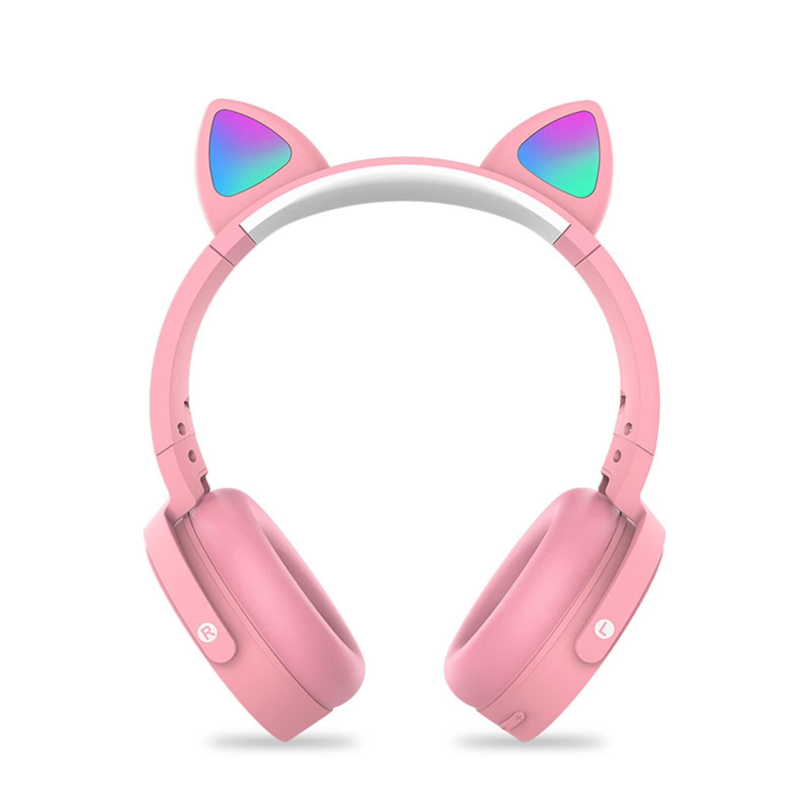 Fidget Headphones Kids Toy Headset, Wireless Bluetooth Headphone Pop Bubble On-Ear Headphone Fidget Toy Rainbow Color Fidget Headset for Children Adults (Pink-Cat)
