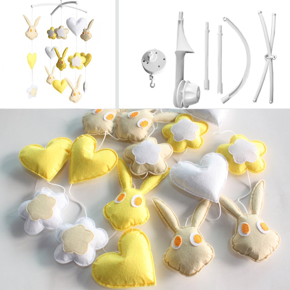 Baby Crib Bell Handmade Musical Mobile Baby Shower Gift Nursery Decor; Yellow Rabbit and Flower Baby Crib Bell Handmade Musical Mobile Baby Shower Gift Nursery Decor; Yellow Rabbit and Flower