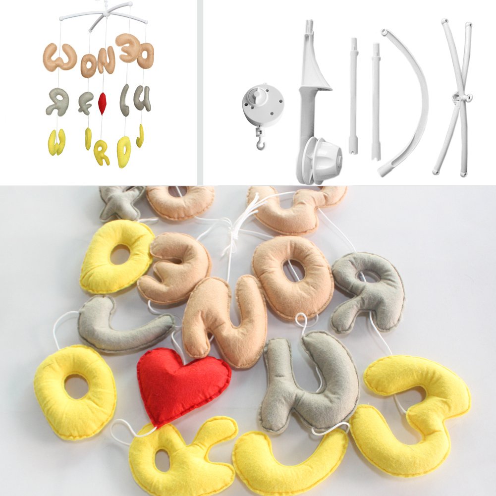 3.Each package contains a baby crib mobile holder arm bracket, a Wind-up Music Box and hanging non-woven fabric toys.