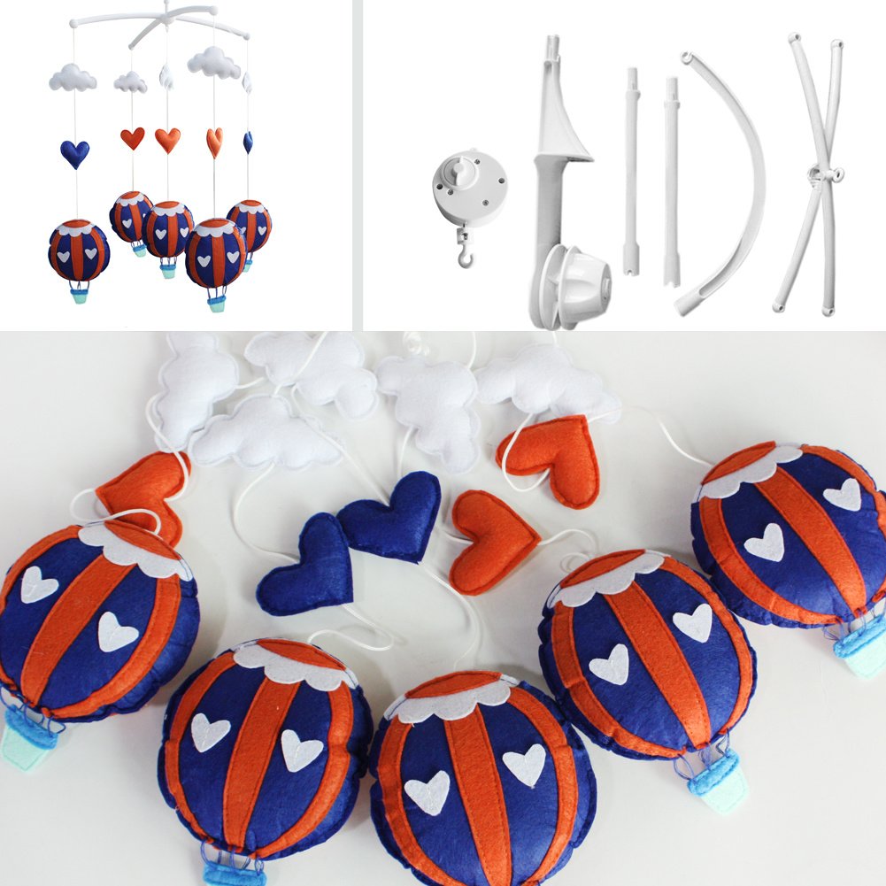 Home > Blue Orange Hot Air Balloons Handmade Infant Gift Baby Musical Crib Mobile Boys Girls Nursery Room Decor