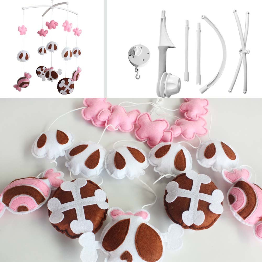 3.Each package contains a baby crib mobile holder arm bracket, a Wind-up Music Box and hanging non-woven fabric toys.