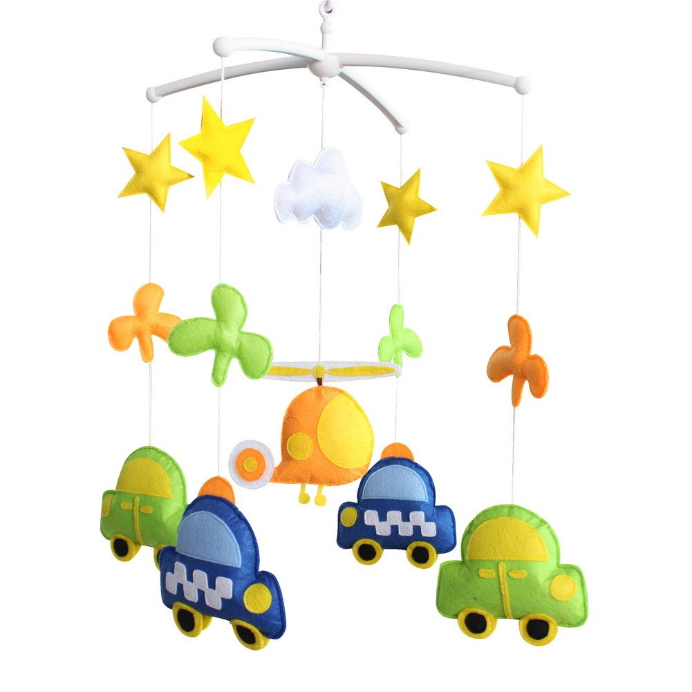Green Blue Taxi Orange Helicopter Handmade Infant Baby Musical Crib Mobile Gift Boys Girls Nursery Room Decor