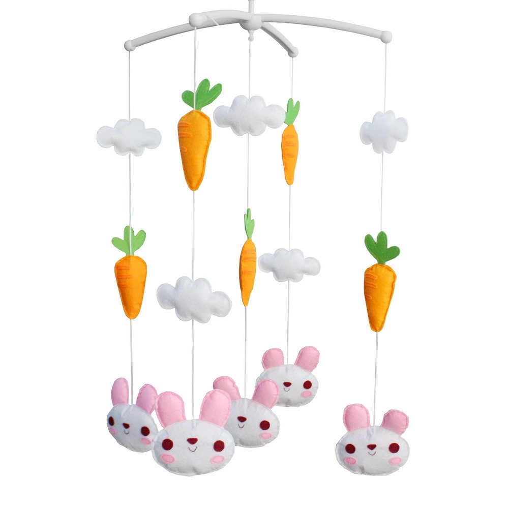Handmade Rabbit and Carrot Baby Crib Mobile Nursery Room Decor Baby Mobile for Crib; White Pink Orange