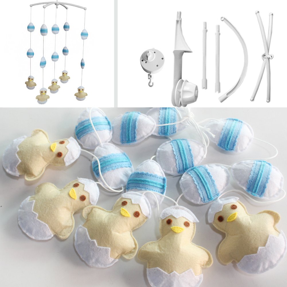 Handmade Baby Crib Mobile Cute Chicken and Eggs Baby Musical Mobile Kids Room Decor ; Yellow Blue Handmade Baby Crib Mobile Cute Chicken and Eggs Baby Musical Mobile Kids Room Decor ; Yellow Blue