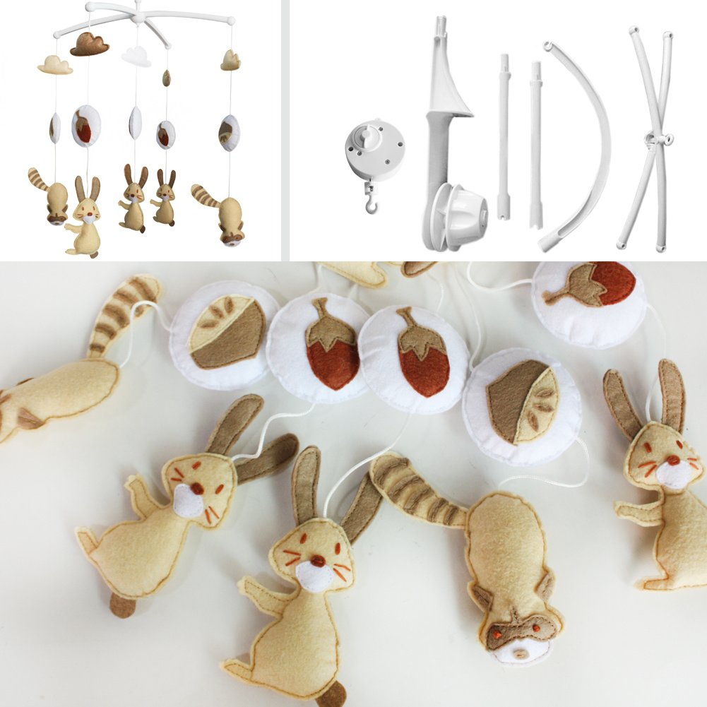 Home > Baby Crib Mobile Animal Musical Crib Mobile Nursery Room Hanging Decor Toy Brown Raccoon Rabbit