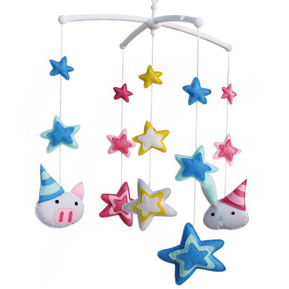 Pigs Stars Baby Crib Mobile Infant Room Hanging Musical Mobile Crib Toy Nursery Decor for Girls Boys