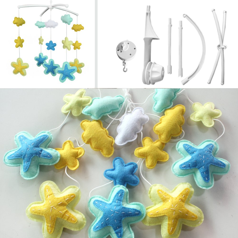 Home > Ocean World Handmade Baby Crib Mobile Hanging Nursery Decor Bed Bell Musical Mobile; Yellow and Blue Starfish